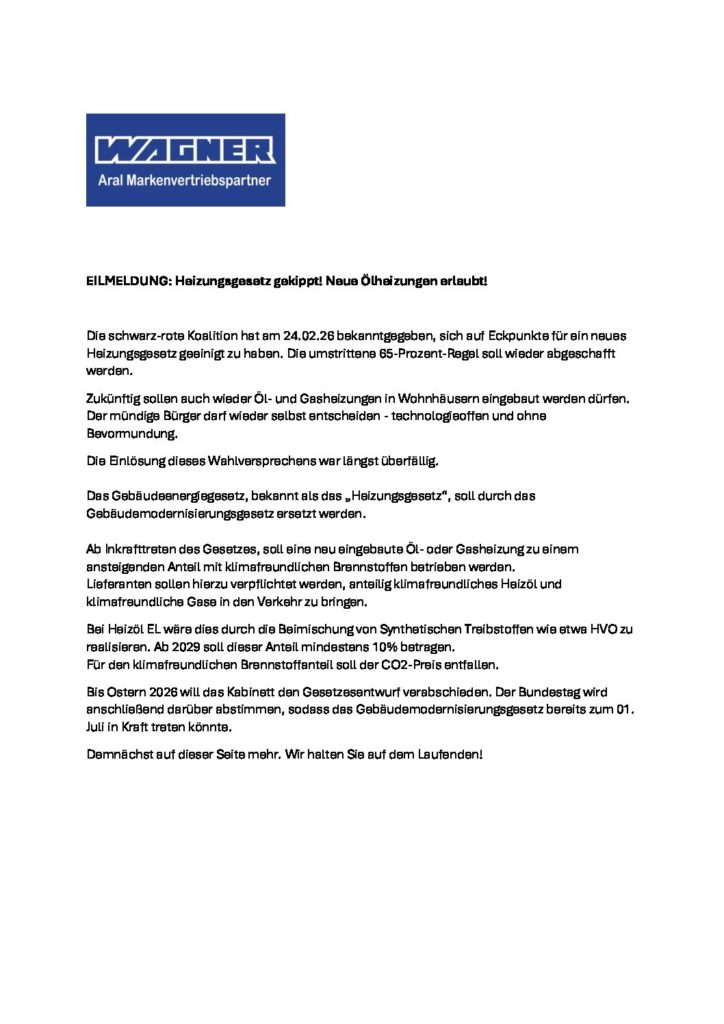 Bitte beachten Sie: Heizöl ist ein steuerbegünstigtes Energieerzeugnis! Darf nicht als Kraftstoff verwendet werden, es sei denn, eine solche Verwendung ist nach dem Energiesteuergesetz oder der Energiesteuer-Durchführungsverordnung zulässig. Jede andere Verwendung als Kraftstoff hat steuer- u. strafrechtliche Folgen! In Zweifelsfällen wenden Sie sich bitte an Ihr zuständiges Hauptzollamt.